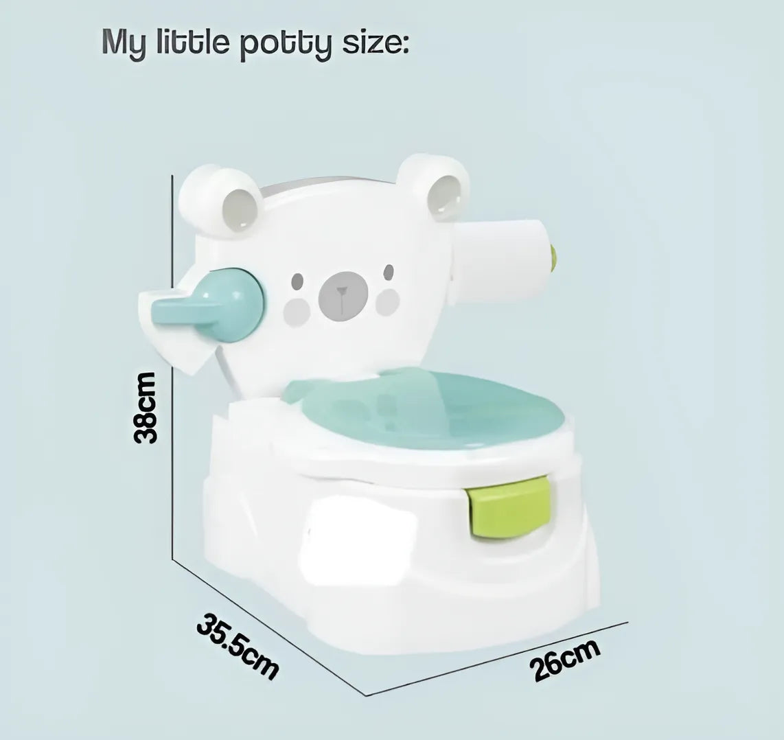 Este bacín musical emite frases motivacionales, música y efectos de sonido al accionar la manilla, reforzando el aprendizaje con estímulos positivos. Cada uso se convierte en un logro para el niño, ayudándolo a ganar seguridad y autonomía durante el entrenamiento.
