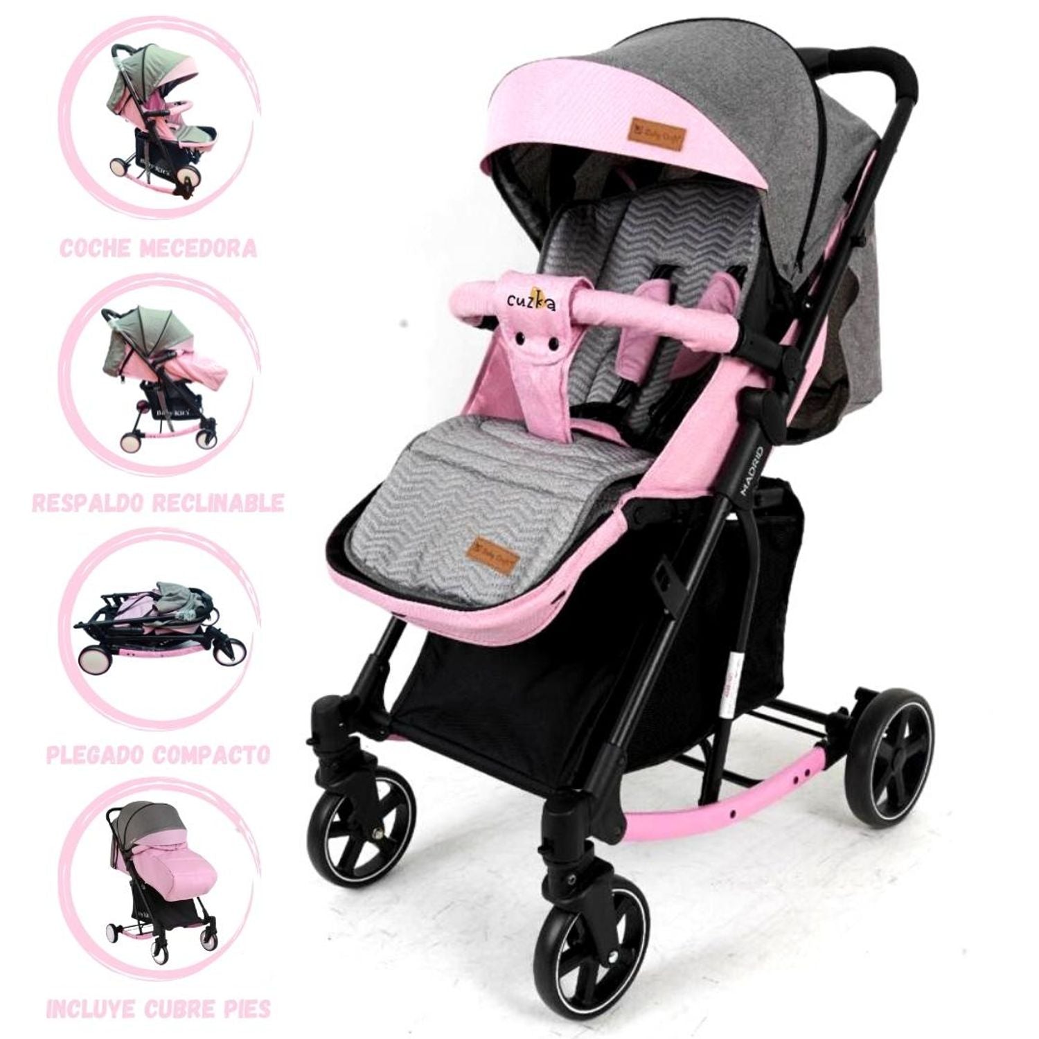 El Coche para Bebé Madrid cuenta con 3 posiciones de reclinado, ideales para que tu bebé pueda sentarse, descansar o dormir cómodamente durante el paseo. Además, su sistema mecedora ayuda a relajar al bebé cuando está en reposo, brindándole una sensación de calma y bienestar.