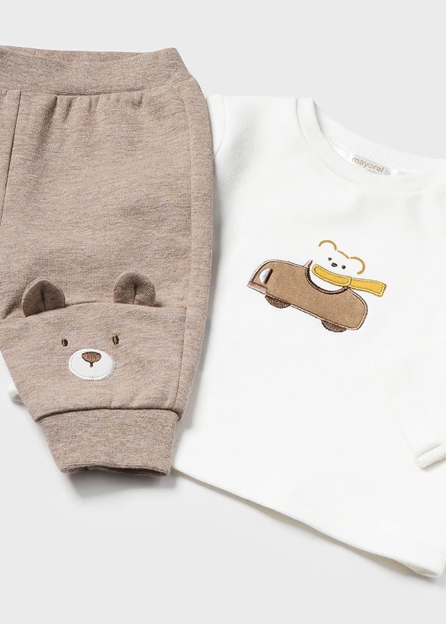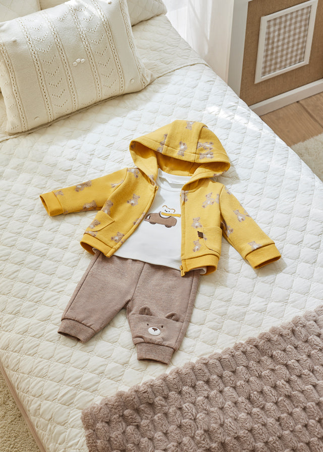 Mayoral Newborn Chándal 3 piezas otoño-invierno, sudadera con capucha, camiseta de manga larga y pantalón, color tiramisú.
