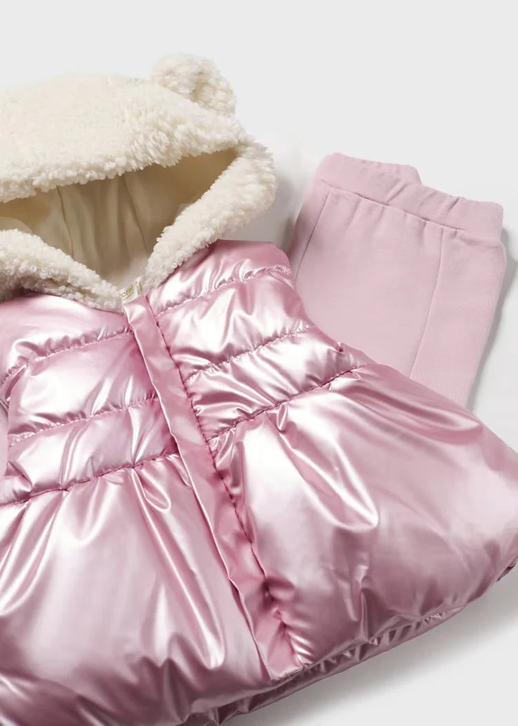 Conjunto de invierno grueso, cálido y muy cómodo, ideal para los días fríos. Diseñado por Mayoral con materiales de alta calidad, ofrece resistencia y suavidad, garantizando que tu hijo disfrute de cada momento con estilo y confort. Su diseño encantador y versátil lo convierte en el complemento perfecto para cualquier look invernal.
