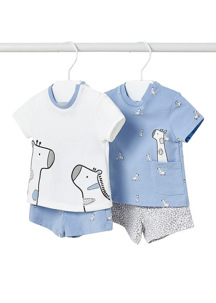 Prenda ECOFRIENDS, contiene algodón sostenible. Set de cuatro piezas para recién nacido formado por dos conjuntos de camiseta de manga corta y short combinables. Camiseta de manga corta para recién nacido. Cierre con botones en el hombro. Diseño con delicados motivos infantiles. pantalón de tipo bermuda para recién nacido. Goma elástica en la cintura para un mejor ajuste. Bolsillo trasero funcional.