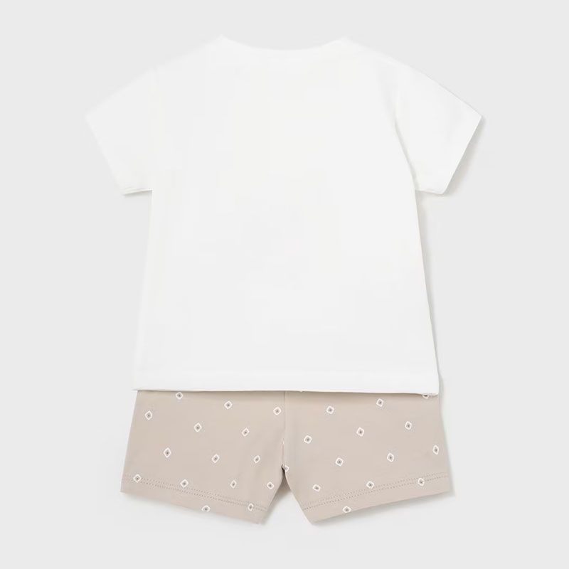 Pantalón de tipo short para recién nacido. Cintura con cordón interior ajustable. Diseño estampado.