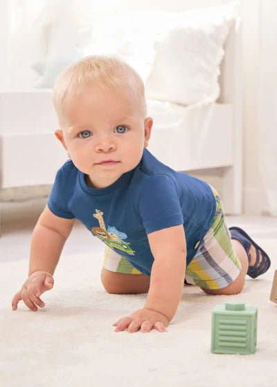 Conjunto de camiseta y bermuda combinadas para recién nacido.