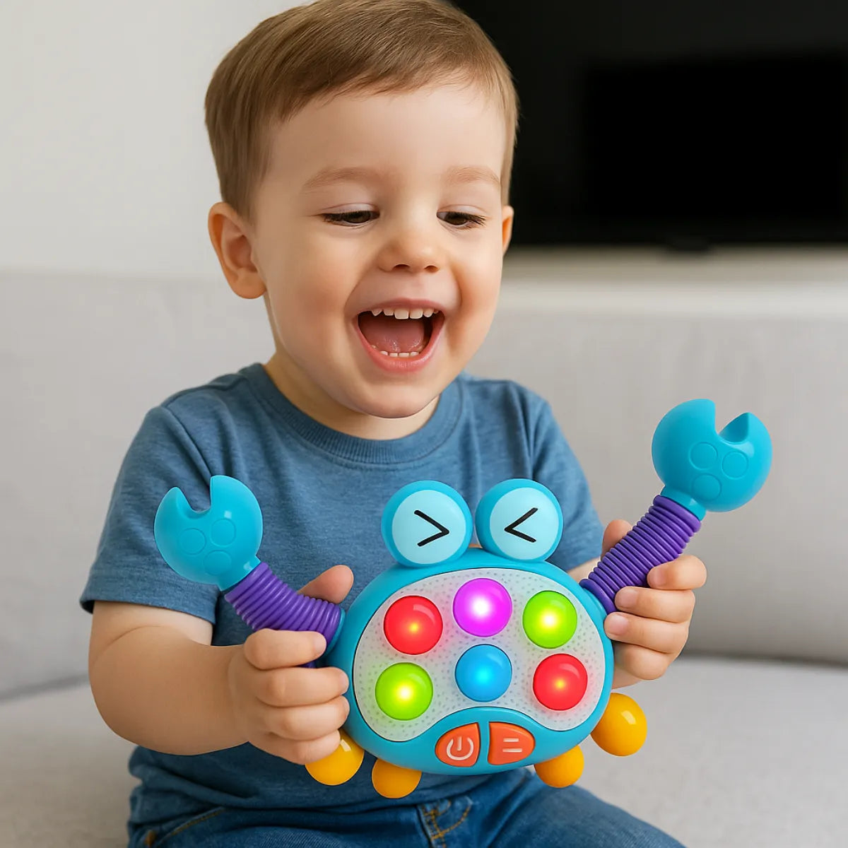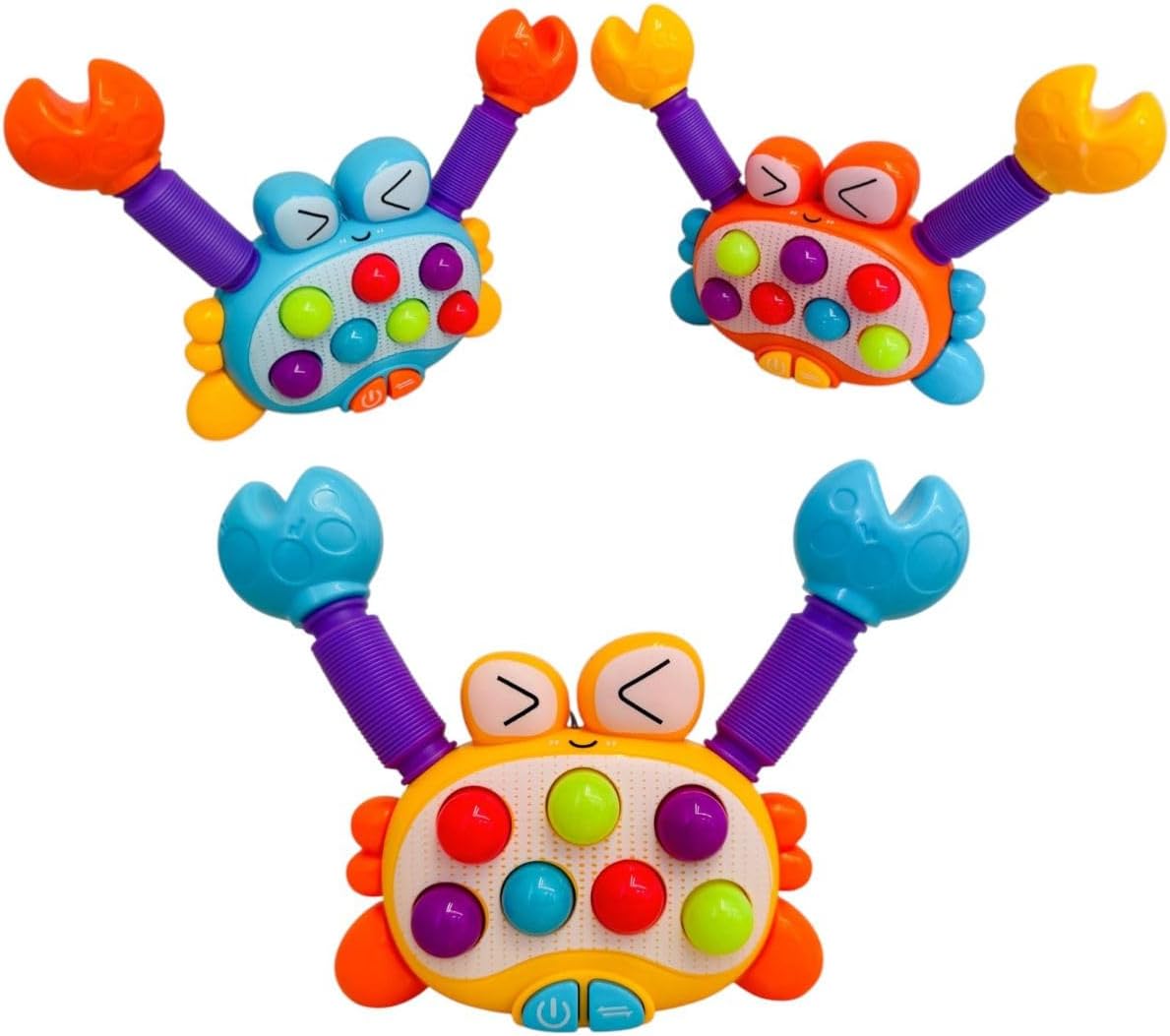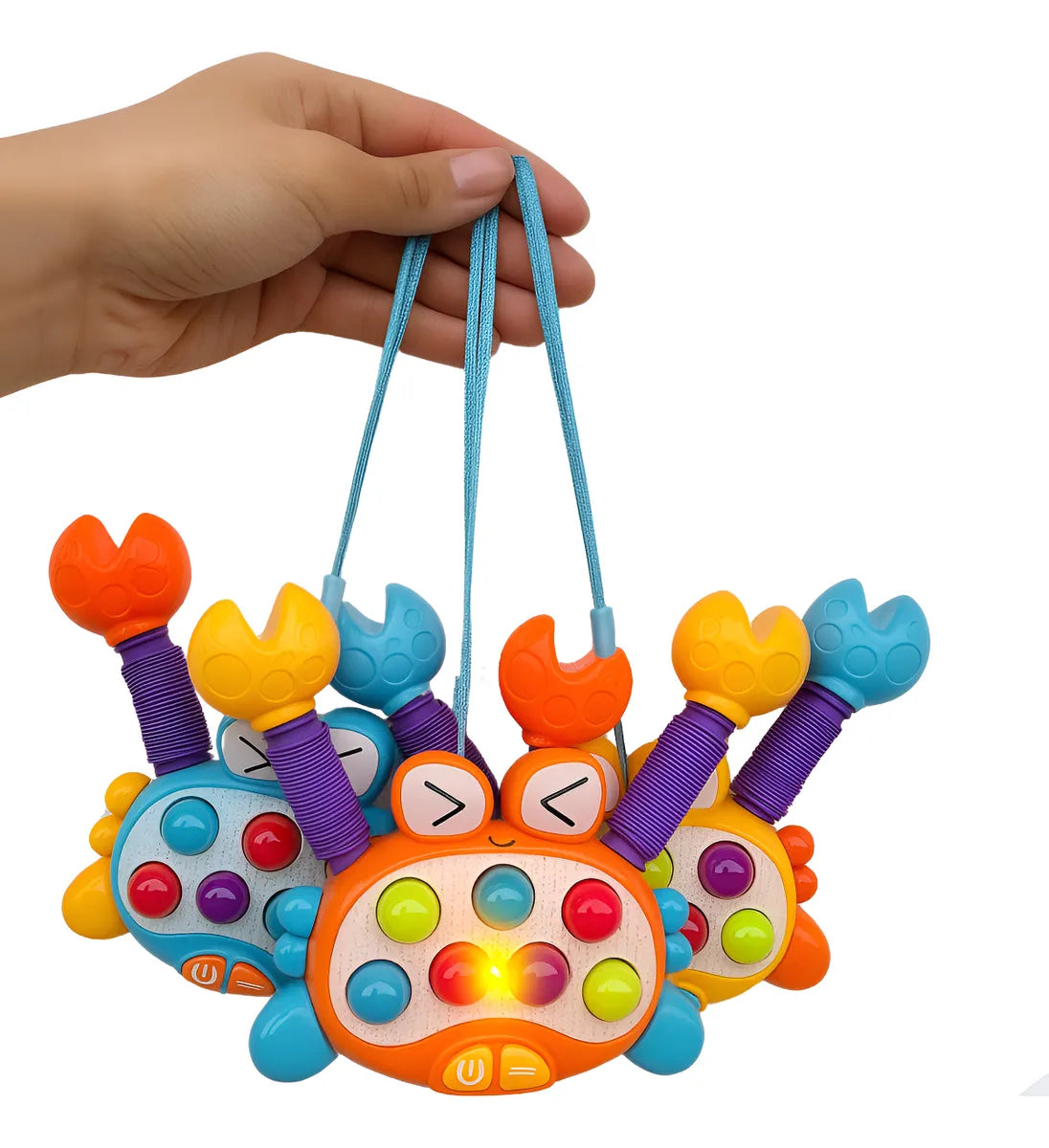 Este cangrejo sensorial musical Pop It es perfecto para niños desde los 3 años, combinando botones tipo pop it, sonidos interactivos, luces vibrantes y un diseño súper llamativo. Es ideal para estimular la curiosidad, la motricidad fina y la atención, convirtiendo el tiempo de juego sin pantallas en un momento educativo y entretenido.