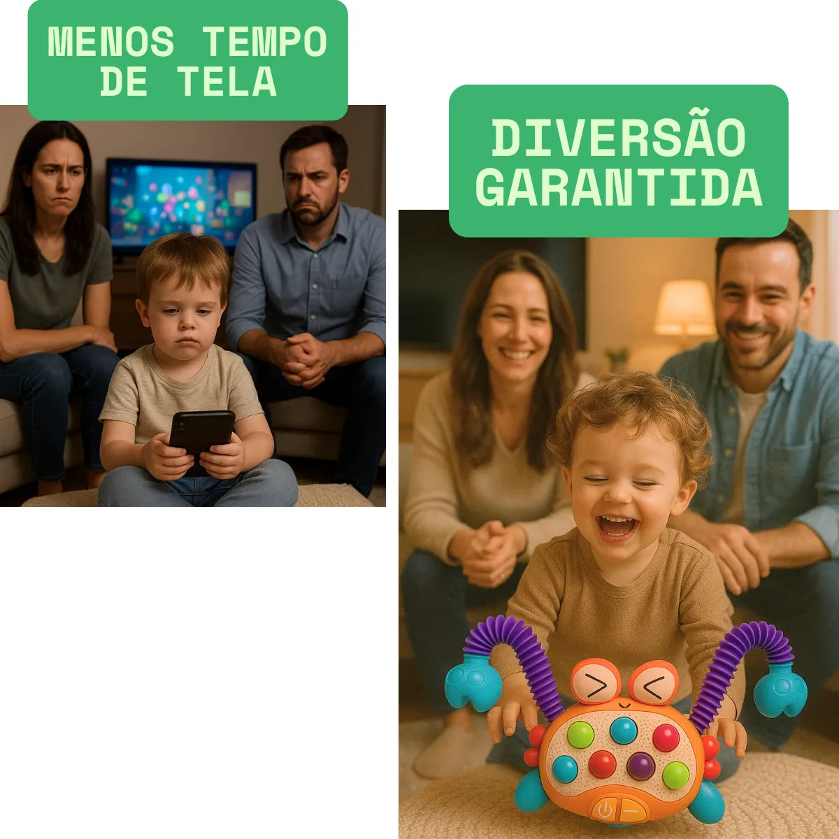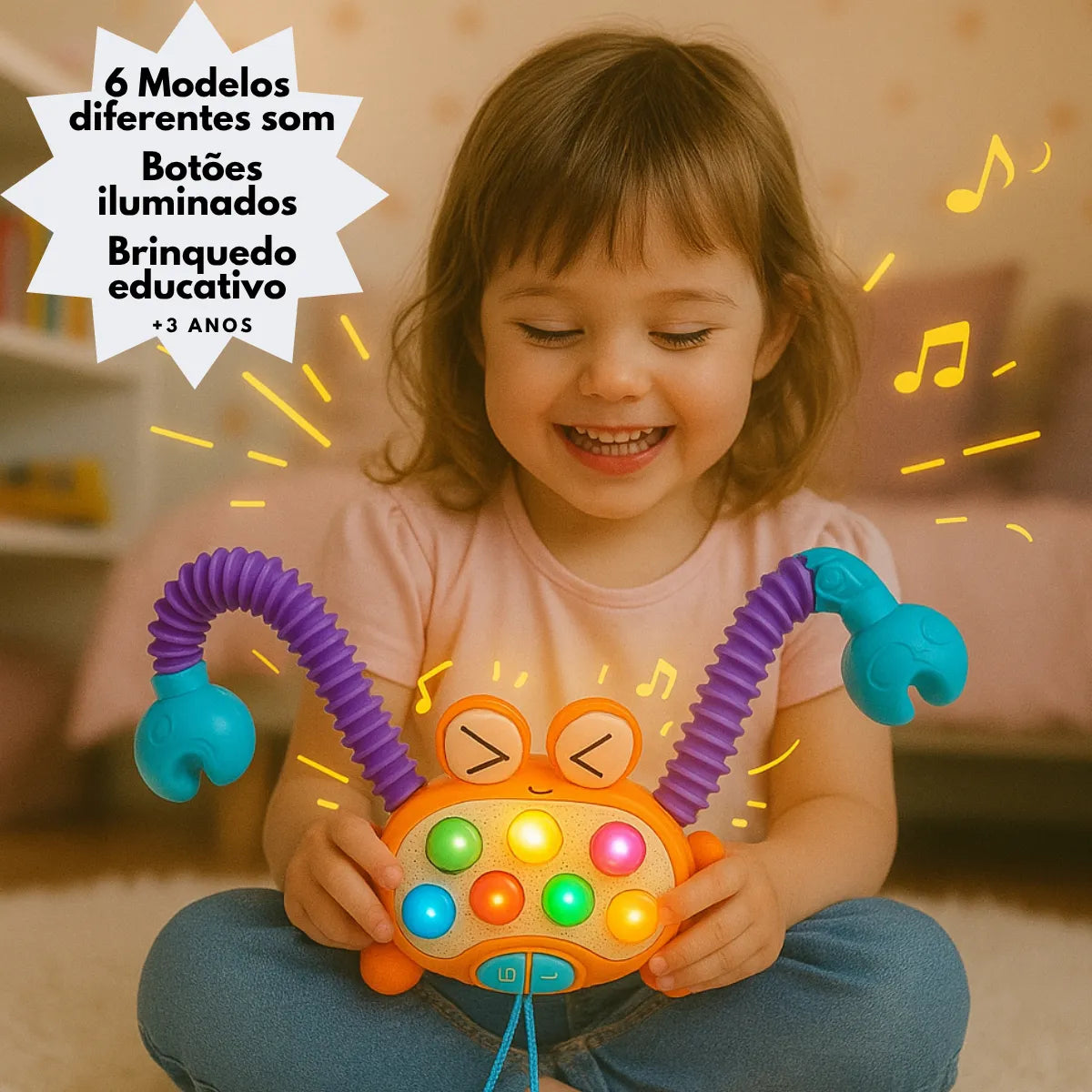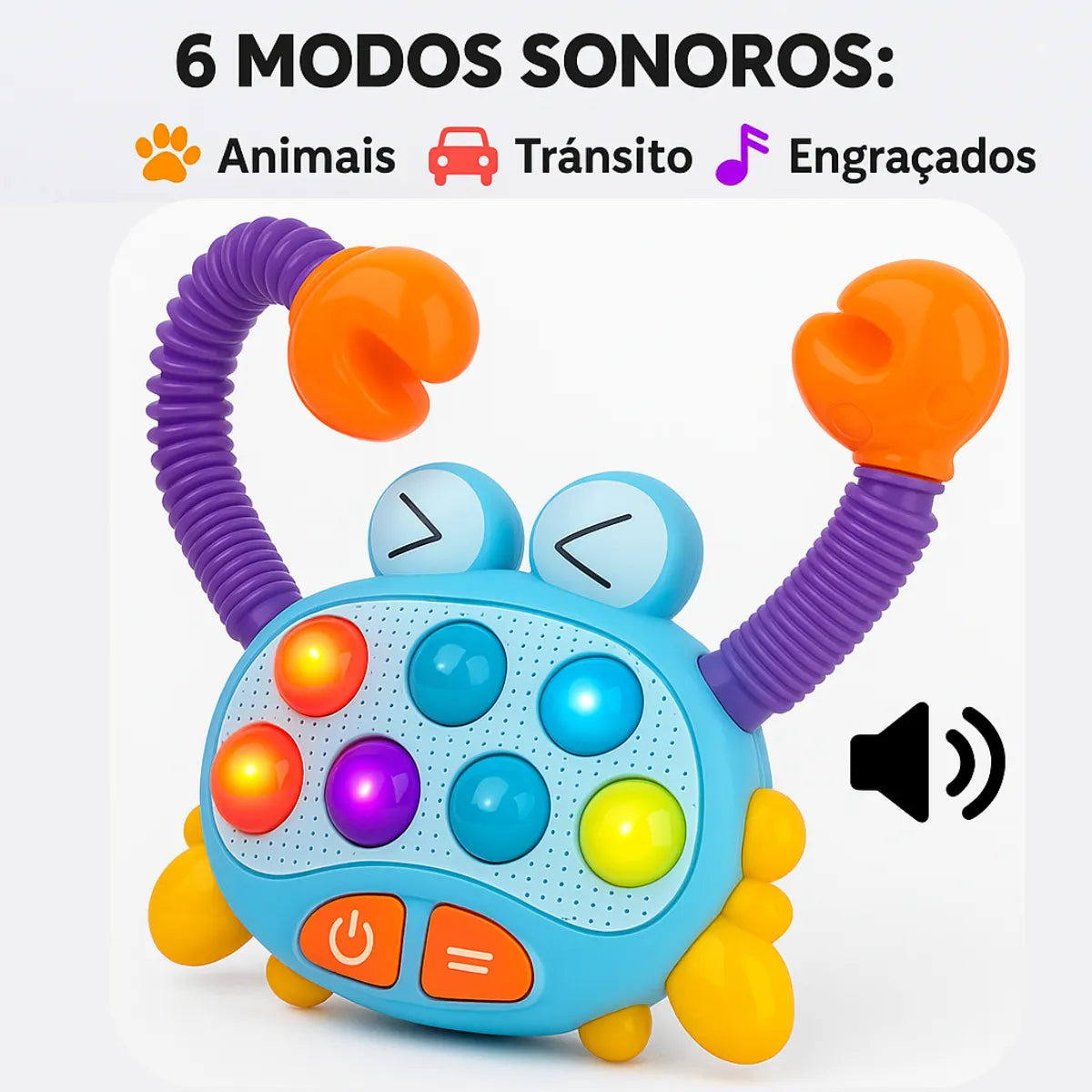 Este cangrejo sensorial musical Pop It es perfecto para niños desde los 3 años, combinando botones tipo pop it, sonidos interactivos, luces vibrantes y un diseño súper llamativo. Es ideal para estimular la curiosidad, la motricidad fina y la atención, convirtiendo el tiempo de juego sin pantallas en un momento educativo y entretenido.