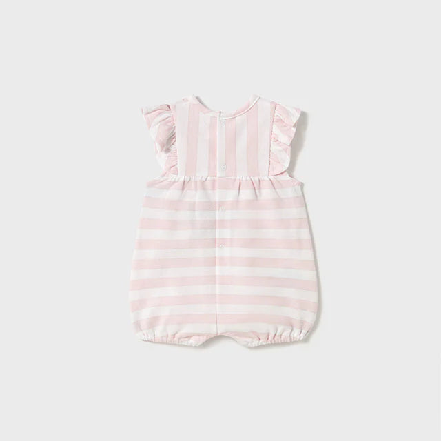 Vestido de manga corta para bebé niña. Cuello redondo. Cierre con botones a presión en la espalda para facilitar su colocación. Diseño estampado.