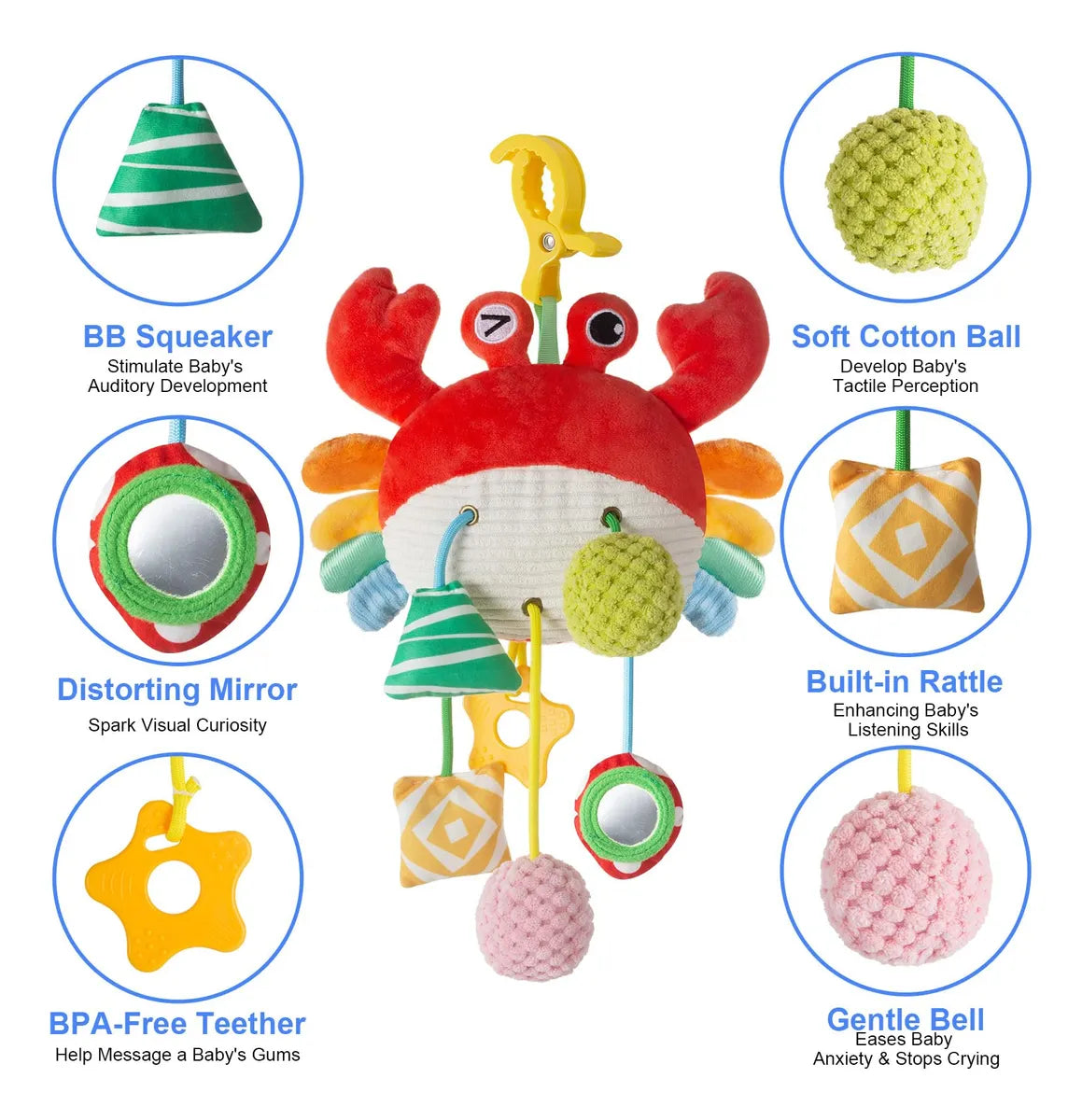 🦀 Juguete Colgante de Cangrejo para Asiento de Automóvil — Bebés 0 a 6 meses
