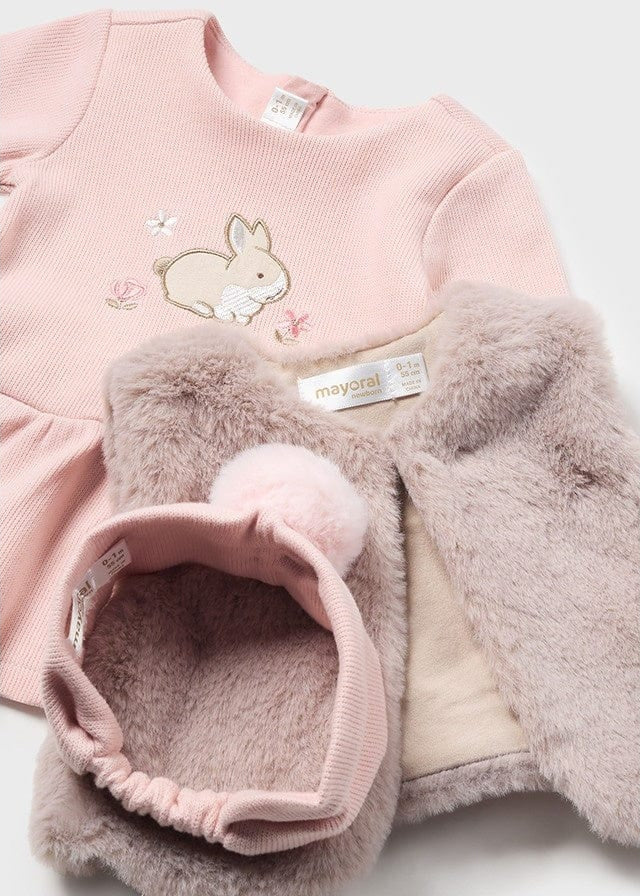 Vestido En Conjunto Con Chaleco y Coleta 3 Piezas Mayoral 2807