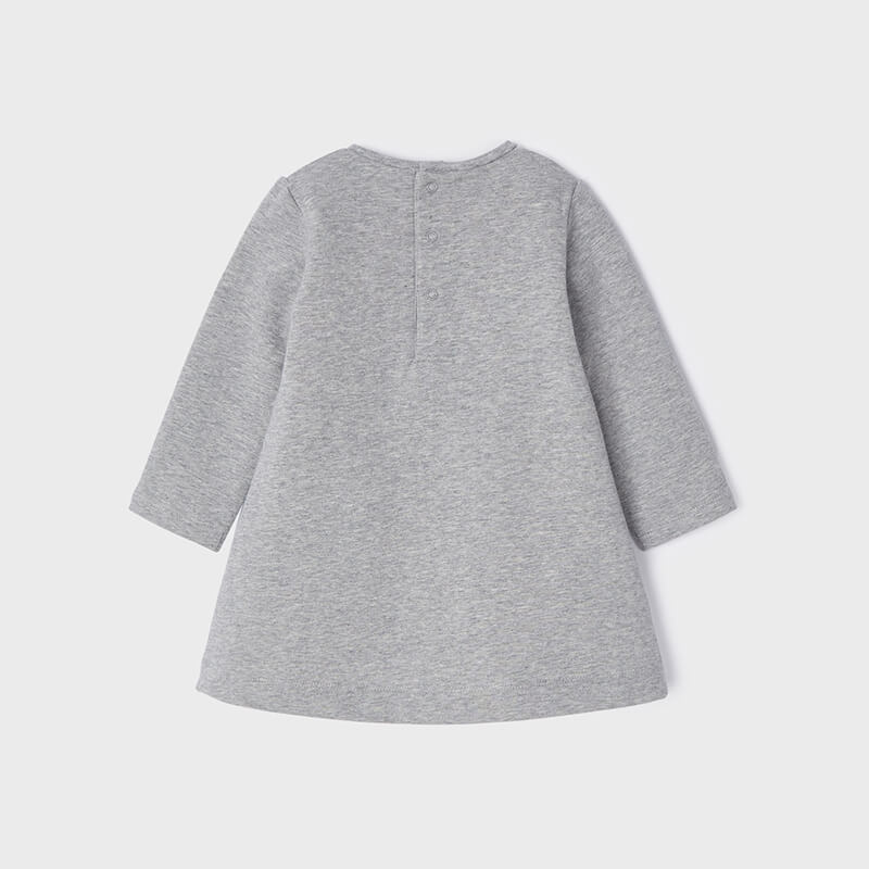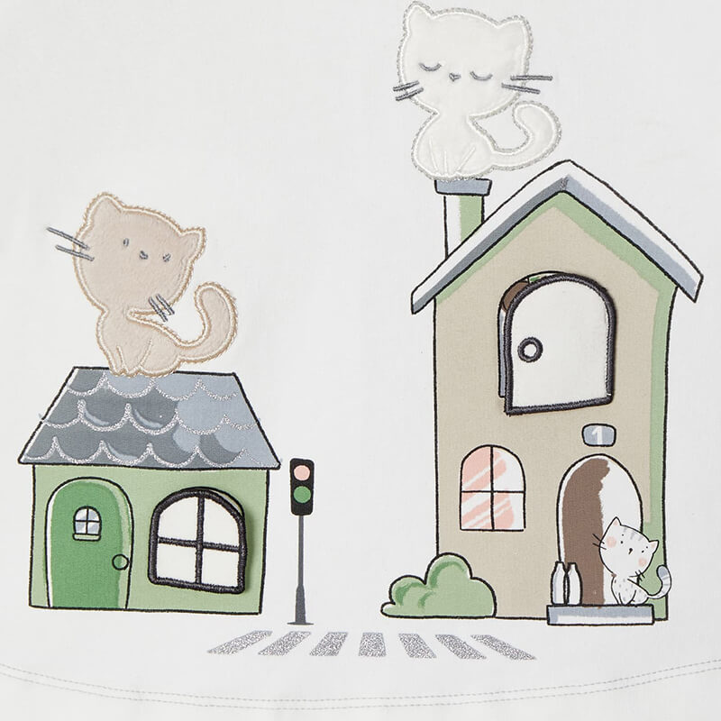 Un vestido con dibujos que encantará a las pequeñas. Los dibujos se complementan con ventanas que se abren. Un vestido original de la colección de juegos interactivos de Mayoral.
